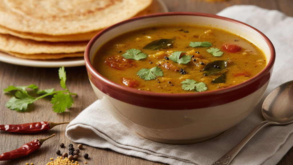 - புளியை சூடான நீரில் ஊறவைக்கவும். சாதாரணமாக 10–15 நிமிடம் போதும். அந்த நேரத்தில் புளி நன்றாக மெலிந்து, சாறு எடுக்க எளிதாக இருக்கும்.